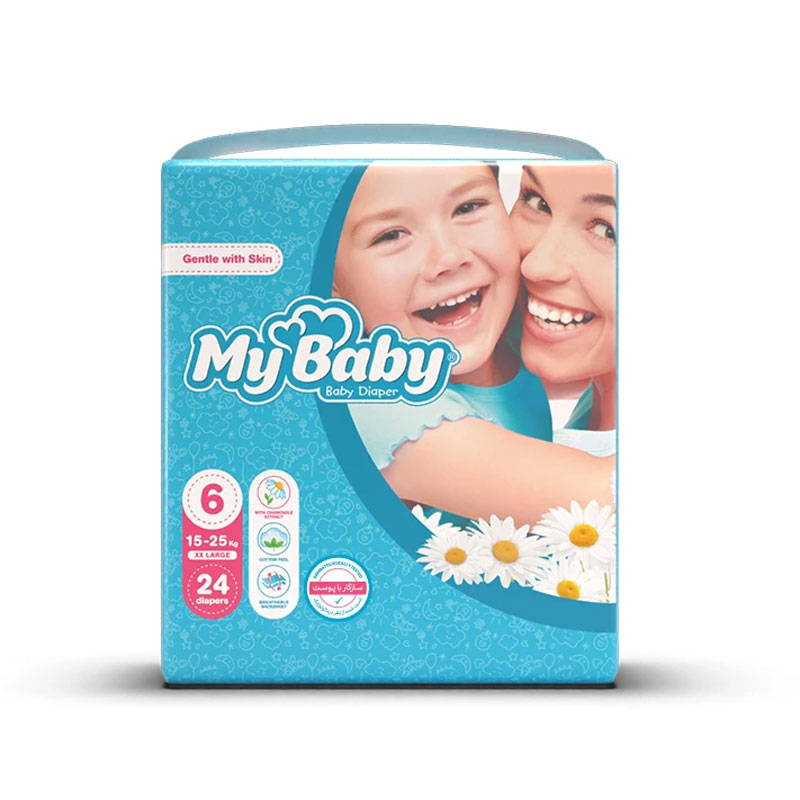پوشک مای بیبی سایز 6 بسته 24 عددی مدل سری مهربان با پوست