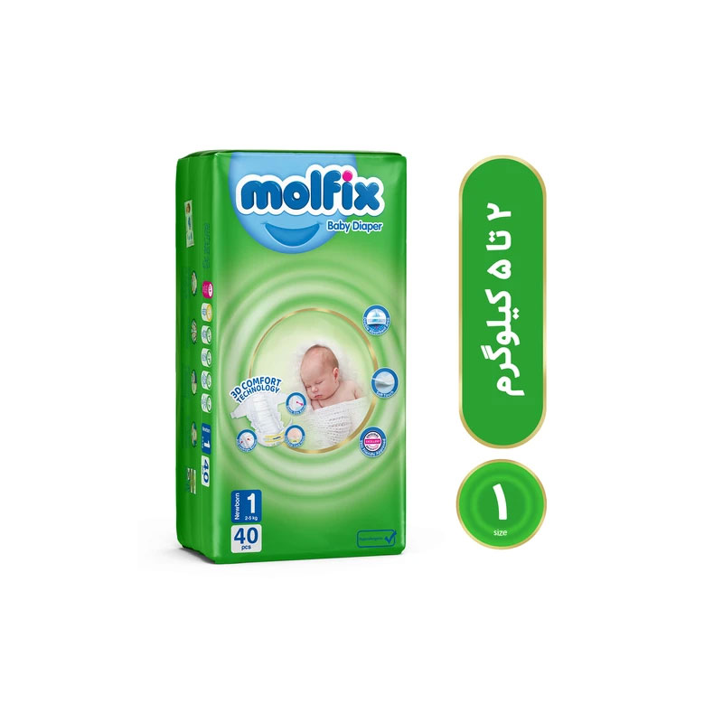 پوشک مولفیکس چسبی سایز 1 بسته 40 عددی