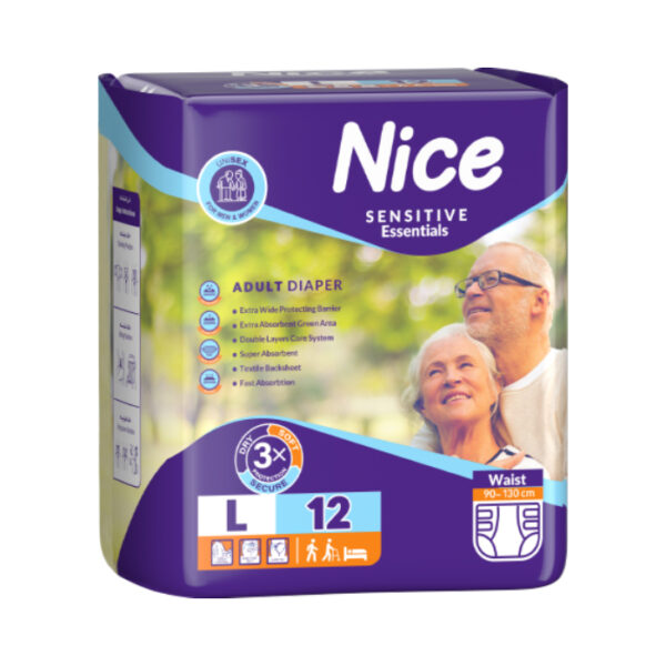 پوشینه بزرگسال نایس سایز بزرگ(متوسط و بزرگ) همواره از احیای اعتماد بنفس، استقلال و جریان یک زندگی فعال و اجتماعی عزیزانی که به دلایل مختلف، همچون سالمندی، حوادث غیرمترقبه و برخی از بیماری ها دچار مشکلات حرکتی و اختلال بی اختیاری ادراری شده اند، حمایت می‌کند.