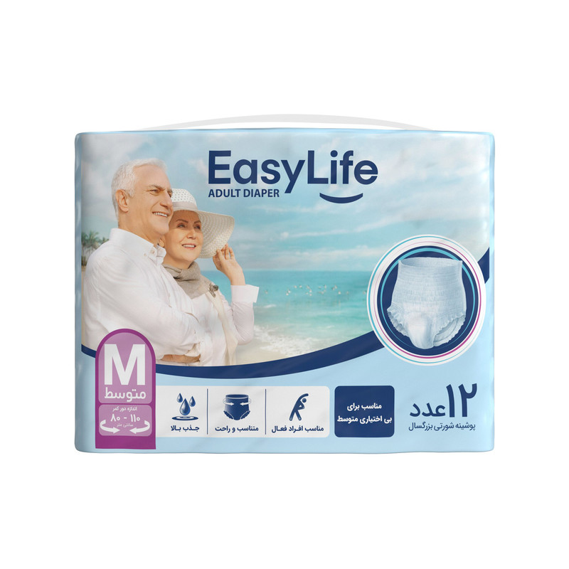 مشخصات پوشینه شورتی بزرگسال ایزی لایف سایز متوسط بسته 12 عددی