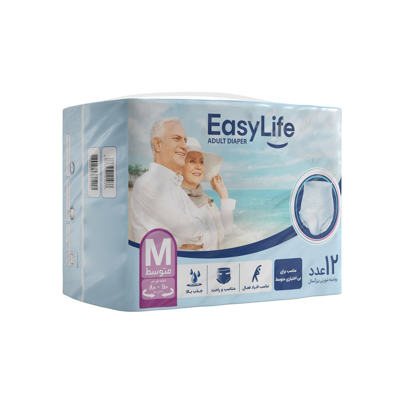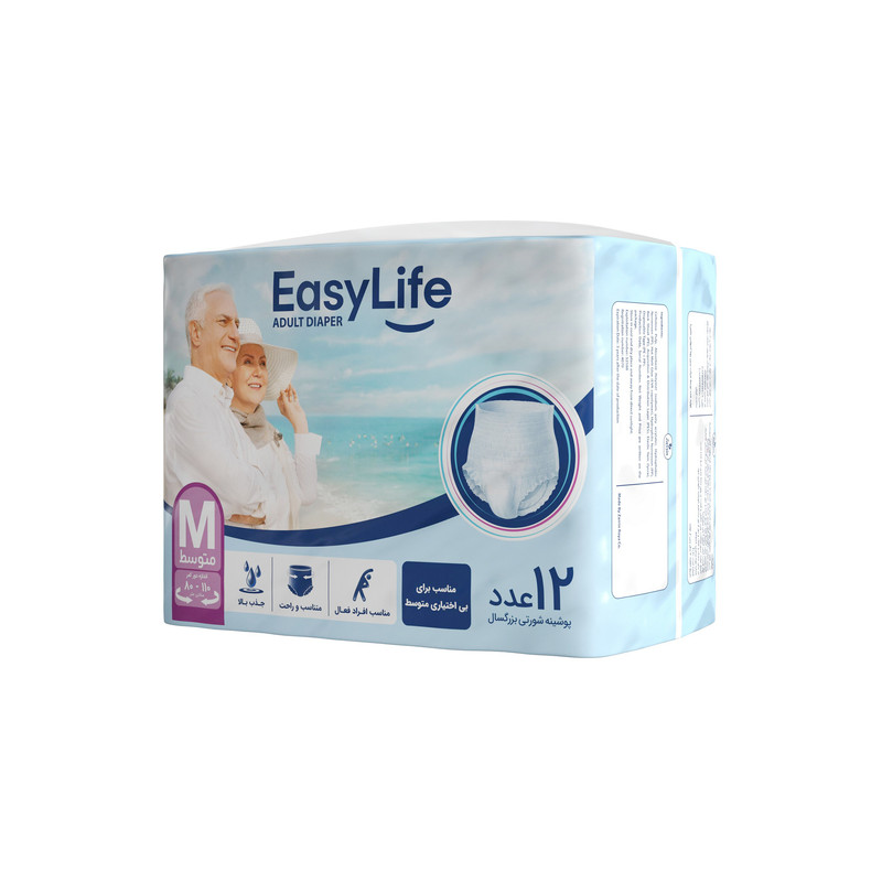پوشینه شورتی بزرگسال ایزی لایف سایز متوسط بسته 12 عددی مناسب برای افراد بالغ با اندازه متوسط است. این محصول برای افراد مسن یا آن‌هایی که نیاز به کنترل ادرار دارند، طراحی شده است. این پوشینه‌های شورتی بزرگسال از مواد نرم و انعطاف‌پذیر ساخته شده‌اند که احساس راحتی و آزادی در حرکت را برای کاربران فراهم می‌کنند.