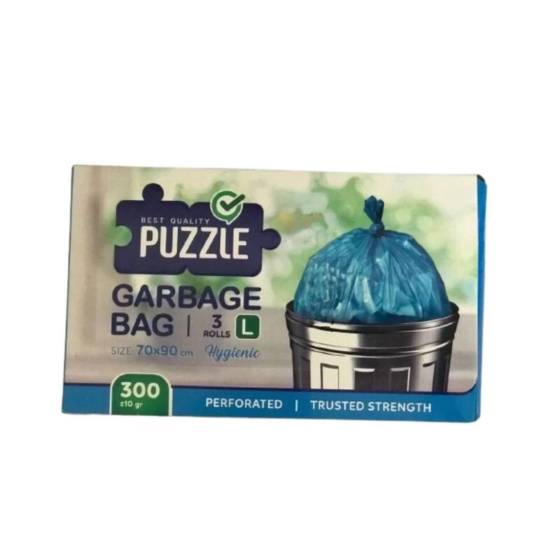 کیسه زباله رولی پازل به صورت پرفراژ دار طراحی شده تا استفاده از آن به سادگی انجام گیرد ضخامت این کیسه به گونه ای ست که بوی نامطبوع زباله به بیرون راه پیدا نمی کند. این محصول از مواد کاملا بهداشتی تهیه شده و مواد بکار رفته در تولید آن قابل تجزیه در محیط زیست می باشد بنابراین استفاده از آن هیچگونه آسیبی به محیط زیست وارد نمی کند. انعطاف پذیر بودن، مقاومت در برابر پارگی و چکه کردن از دیگر ویژگی های این محصول با کیفیت و مرغوب است.کیسه زباله های 3 رول پازل در سه سایز و بسته بندی عرضه گردیده است که سایز کوچک یا زرد رنگ برای مصارف سطل های زیر میزی سایز متوسط یا سبز رنگ که بیشترین مورد استفاده را دارن برای سطل های داخل منازل استفاده میشود و سایز بزرگ یا آبی رنگ برای سطل های رستوران و مراکزی که از سطل ابعاد بزررگ استفاده میکند قابل مصرف میباشند